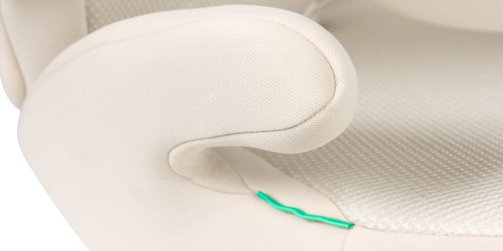 Praktické vodítka bezpečnostních pásů v opěrce hlavy a ergonomické loketní opěrky zajišťují správné nastavení bezpečnostního pásu ve výšce ramen a pánve. Tento systém eliminuje riziko nesprávné instalace a zajišťuje stabilní polohu dítěte a bezpečné nastavení bezpečnostního pásu.
