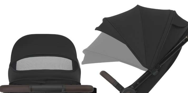 Prostorná stříška po rozložení na velikost XL účinně chrání před sluncem a větrem. Materiál s ochranným faktorem UPF50+ a nepromokavá konstrukce jsou vhodné pro léto i zimu. Praktické průzorové okénko ve stříšce usnadňuje kontrolu nad vaším dítětem, aniž byste ho probudili. Díky chytré konstrukci si stříška udržuje svůj tvar a během cesty se nesklápí. Městský kočárek Espiro Wave PRO je celoroční model.