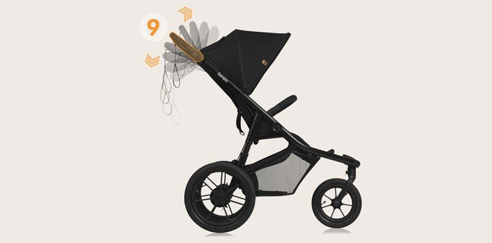 Důležité je také vaše pohodlí - díky 9stupňovému nastavení rukojeti si kočárek snadno přizpůsobíte své výšce.