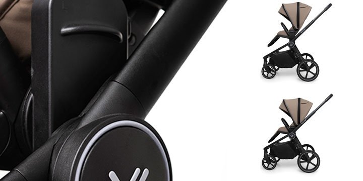 Sedadlo kočárku lze připevnit po směru jízdy nebo proti směru jízdy. To vám umožňuje denně měnit jízdu, abyste zajistili pohodlí vašeho dítěte nebo jednoduše přizpůsobili jeho náladě.