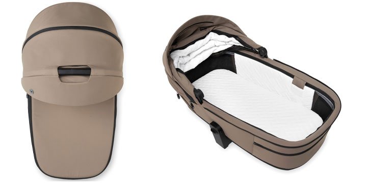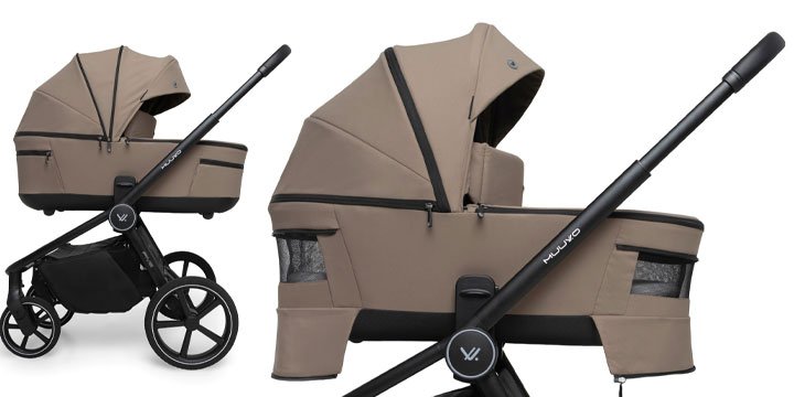 Korba kočárku 2 v 1 Muuvo Five je prostorná a pohodlná – uvnitř má měkkou matraci a zvenku je potažena materiálem s ochranným faktorem UPF50+. Dno korby je navíc vyztuženo EPP pěnou, která zajišťuje ještě lepší tlumení nárazů.