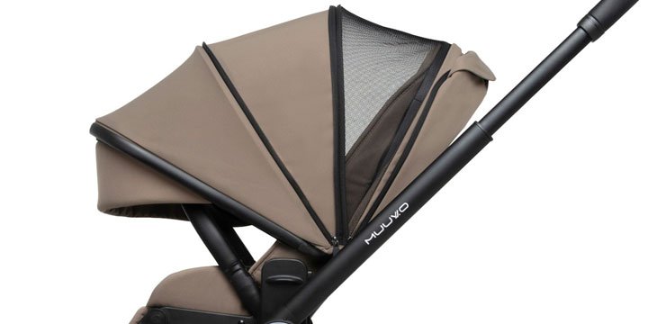 Verze kočárku Muuvo Five účinně chrání dítě před sluncem díky velké, roztažitelné stříšce s ochranou UPF50+. Stříška má větrací okénko, které umožňuje rodičům nahlédnout na své dítě.