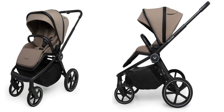 Obrovskou výhodou Muuvo Five je možnost nastavení výšky hluboké korby a sedací části, takže i vyšší rodiče si mohou tento kočárek Muuvo 2 v 1 snadno přizpůsobit svým potřebám.