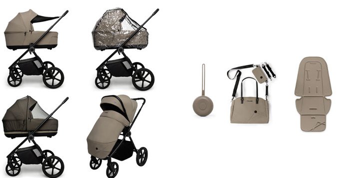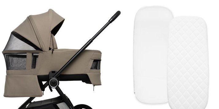 Muuvo One je kočárek 2 v 1 s příslušenstvím. Obsahuje nejen hlubokou korbičku, kočárek a rám, ale také moskytiéru, pláštěnku, nánožník, sluneční clonu, tašku, držák na dudlík a vložku z paměťové pěny.