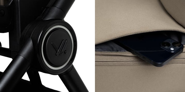 Muuvo One má reflexní prvky na rámu a diskrétní kapsu na předměty, které chcete mít po ruce. Kočárek může být pohodlný pro dítě a praktický pro rodiče a model prezentovaný zde je příkladem takové kombinace.