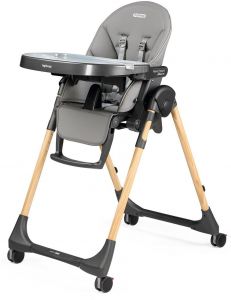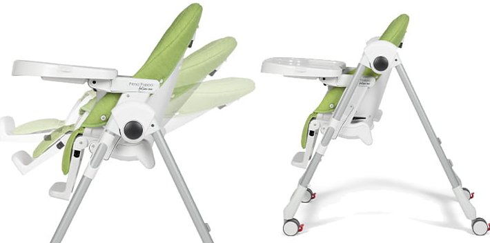 Zajímavým řešením Peg Perego je také fakt, že vrchní část (podnos) židle lze sejmout a zavěsit na zadní trubky a samotnou židli lze přivést ke stolu, aby si dítě dalo jídlo s rodinou.
